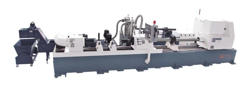 This machine tool is the latest development of our company, The new generation of efficient deep hole workpiece processing and machine tool which can replace the old deep hole boring machine,The machine tool is equipped with high power, strong rigidity, high precision, wide processing technology margin, flexible technology and high cost performance. This machine adopts the one time process of boring, skiving and Burnishing the workpiece without moving the workpiece when the tool turns .Processing efficiency is very high, processing product quality is stable, It is the replacement product of deep hole oil cylinder processing equipment.